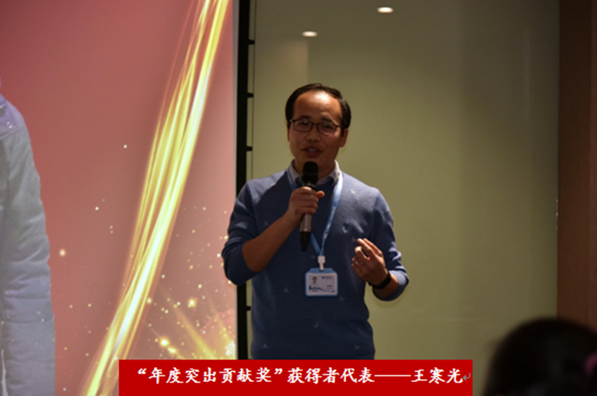 “年度突出贡献奖”获得者代表王寒光(软件工程室)。