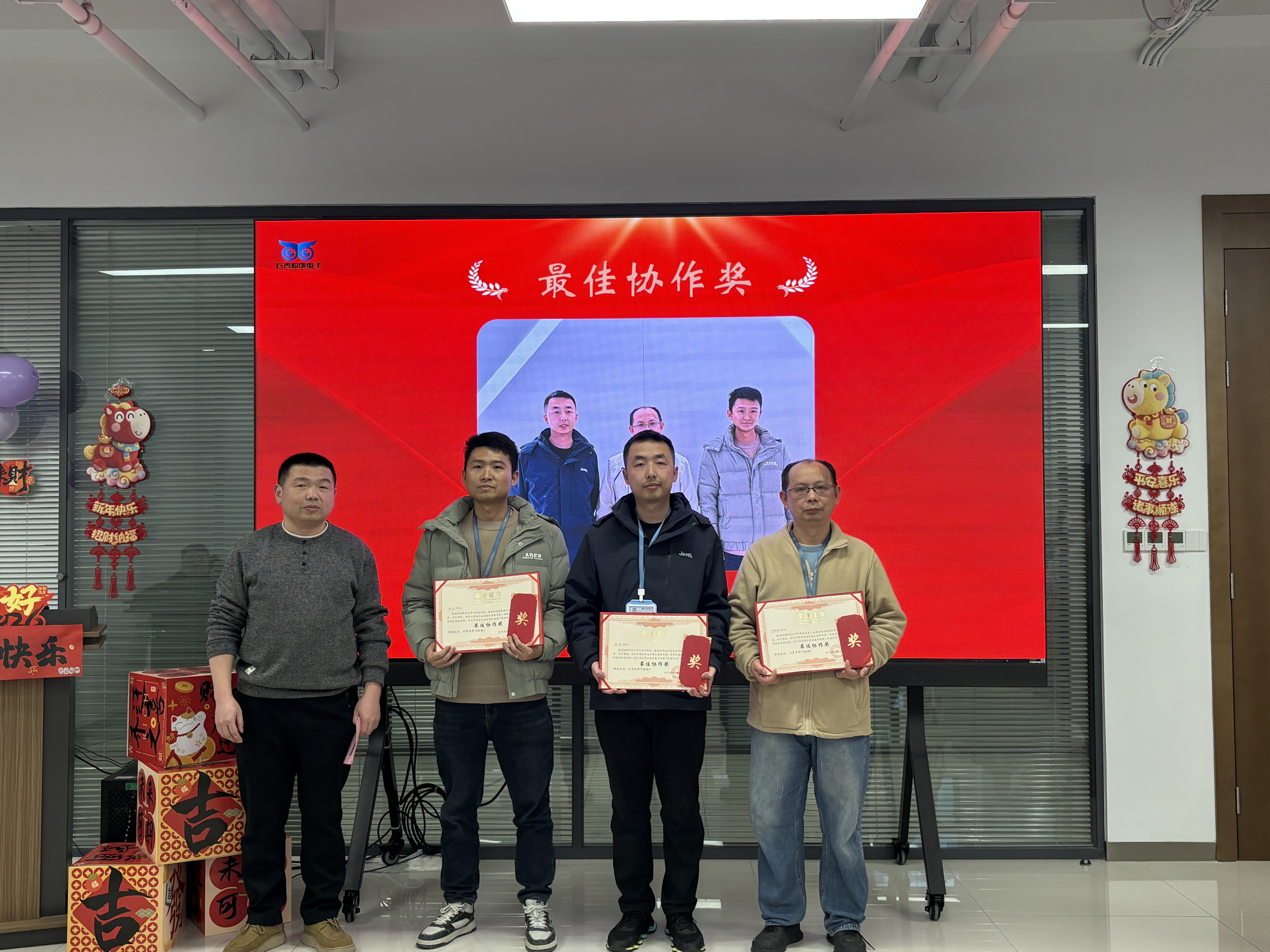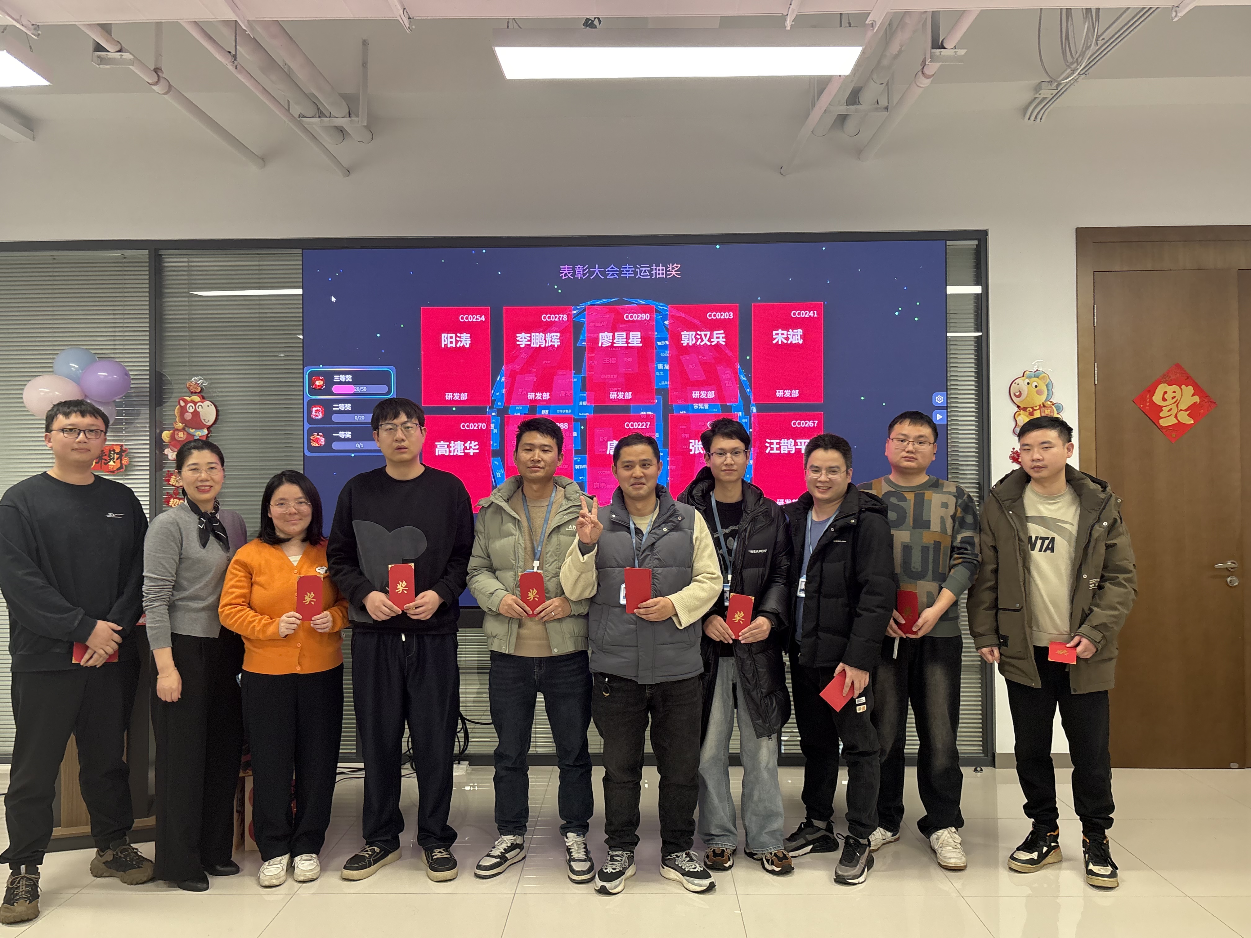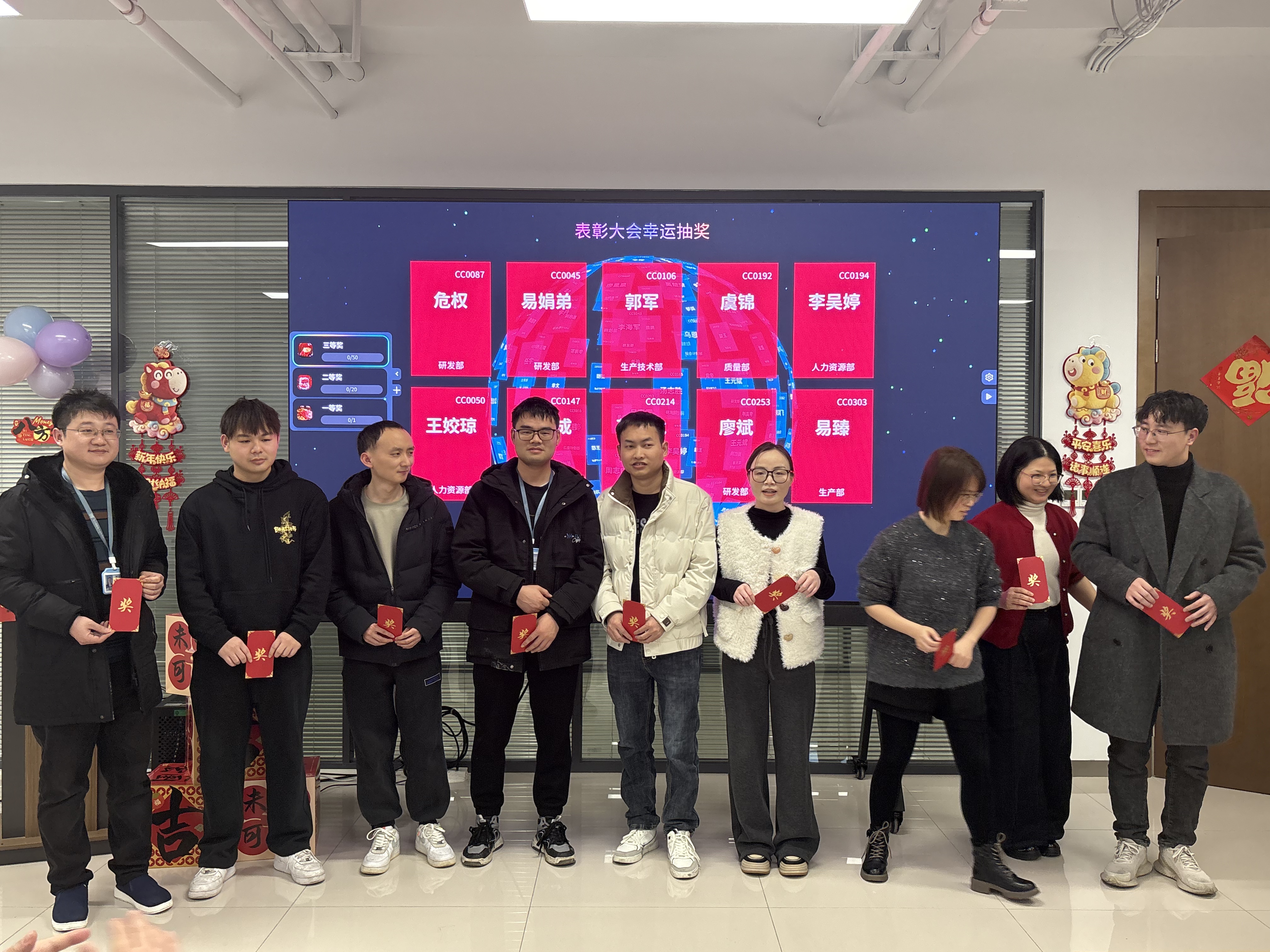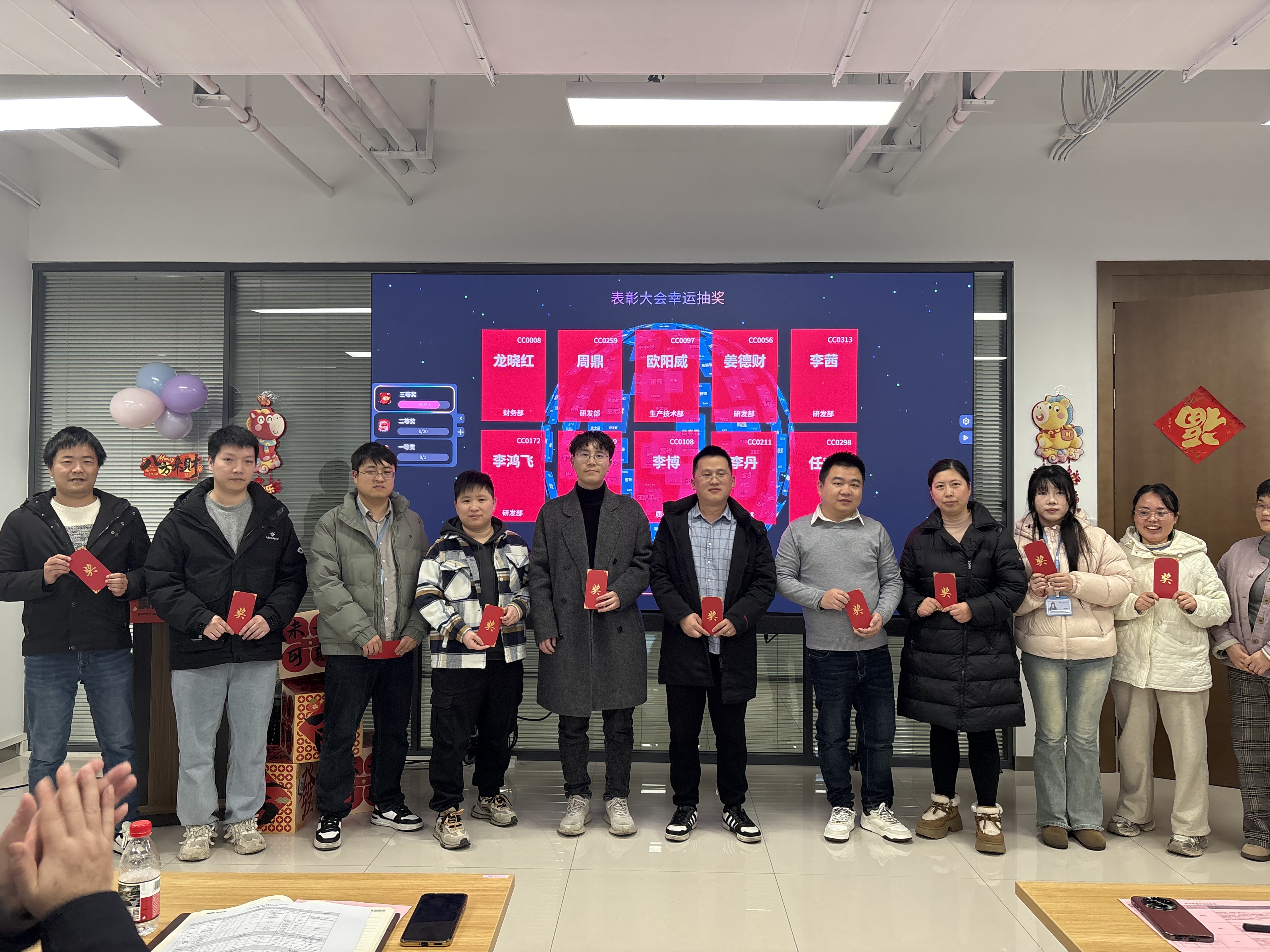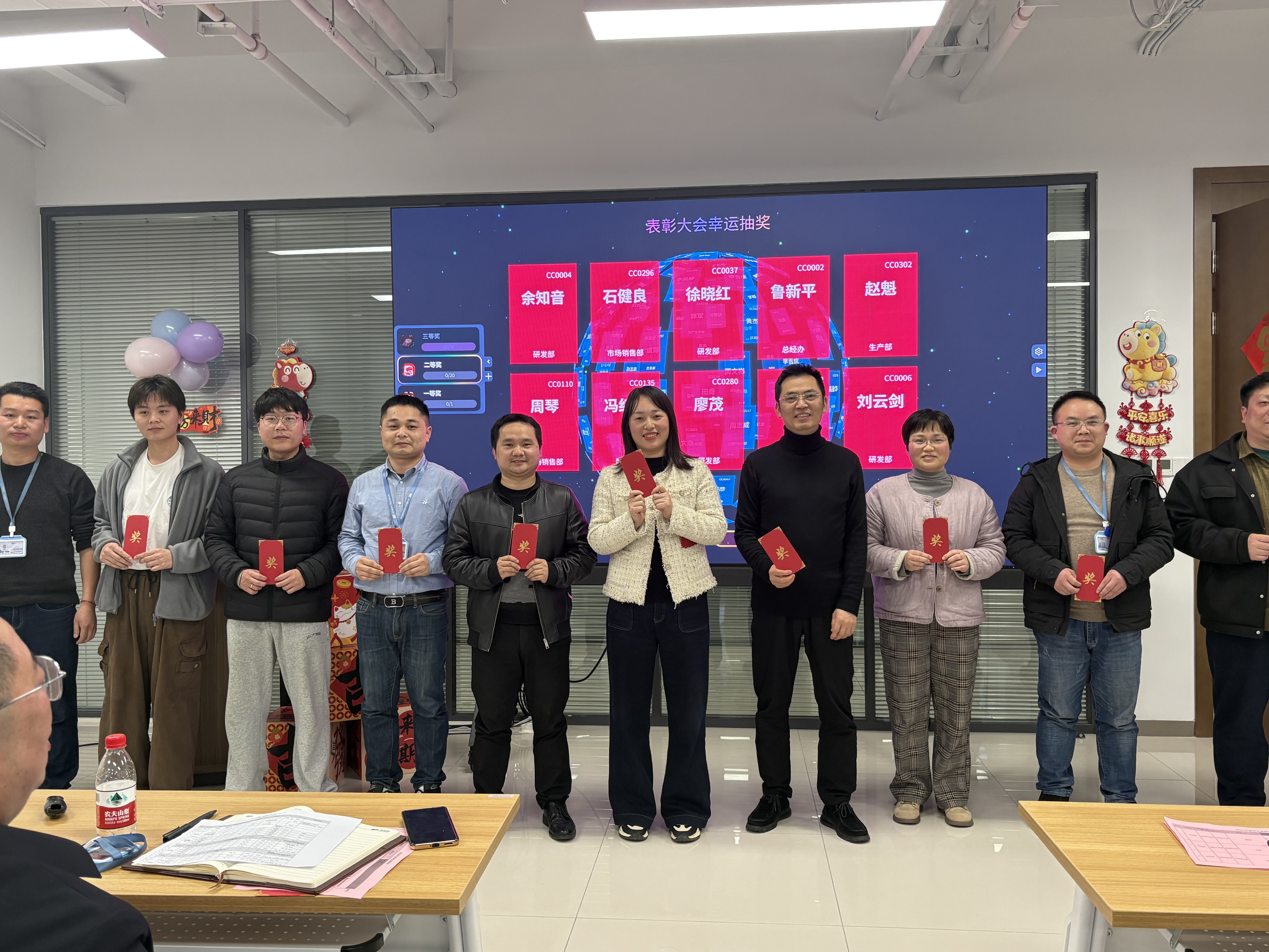 表彰树立典范,抽奖点燃热情。备受期待的抽奖环节将现场气氛推向高潮。大屏幕上名字滚动闪烁,每一位同事都满怀期待,欢声笑语中传递着浓浓的团队温情。