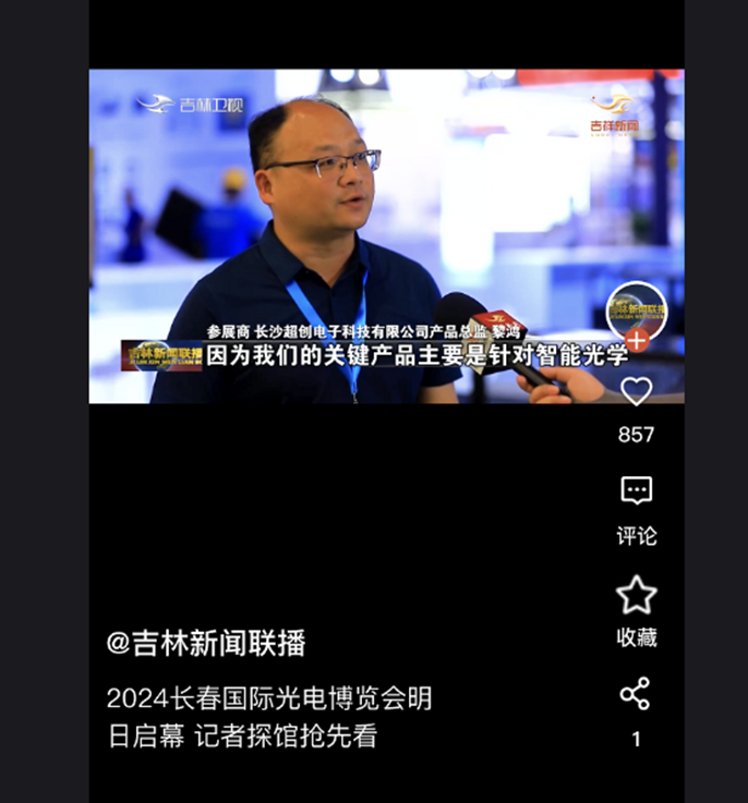 展会期间,吉林卫视电视台对长沙超创电子产品总监黎鸿先生进行了新闻采访,黎鸿先生向电视观众介绍和推广了公司光电感知与智能处理等最新产品。