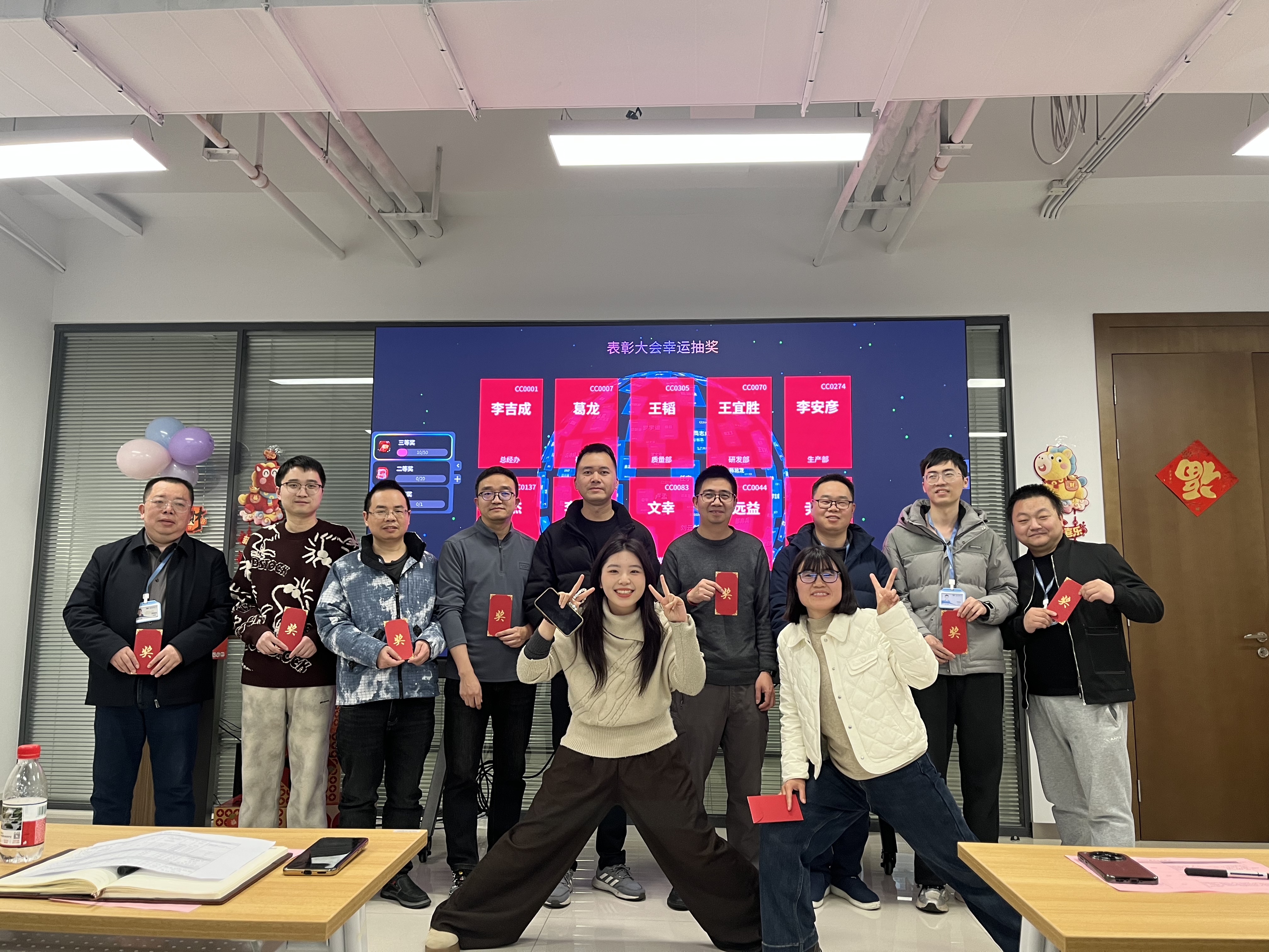 表彰树立典范,抽奖点燃热情。备受期待的抽奖环节将现场气氛推向高潮。大屏幕上名字滚动闪烁,每一位同事都满怀期待,欢声笑语中传递着浓浓的团队温情。